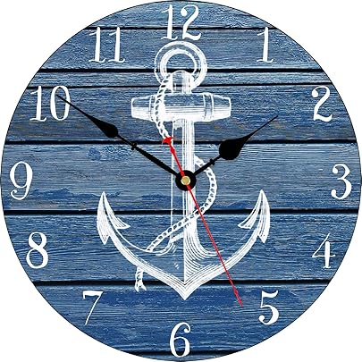 Amazon Com Nautical Anchor Design Wall Clock Home Kitchen